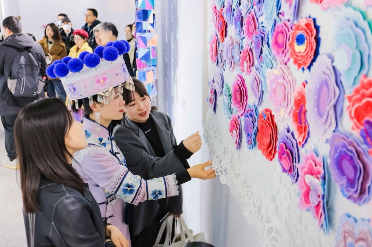 美术学院张红娟副教授与彝族刺绣非遗传承人普明惠共创的系列作品《彝花百里》,表达了彝族人民对美好生活和审美意趣的追求。