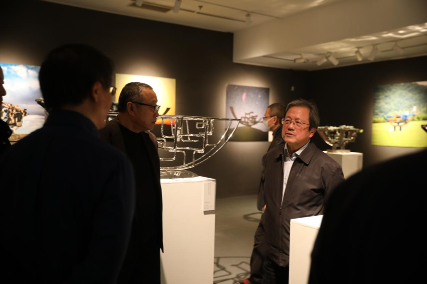 中国美术家协会副主席、鲁迅美术学院院长李象群(左一)参观展览