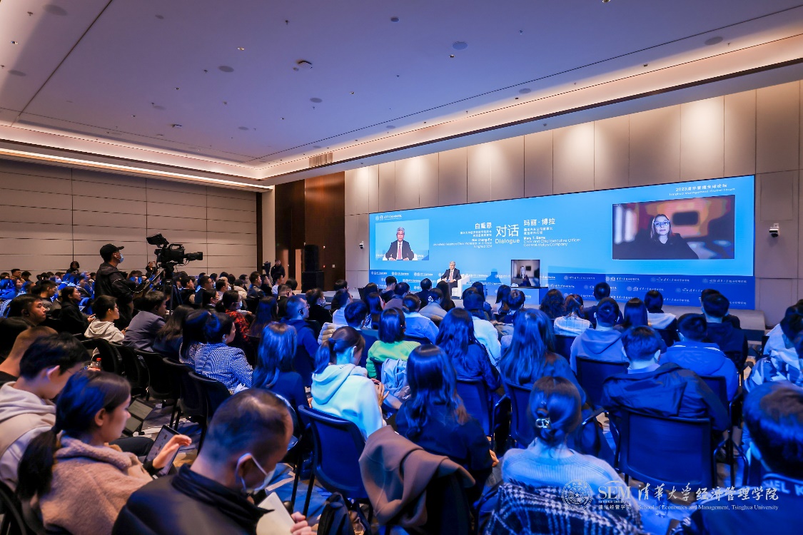 白重恩首先简要介绍了玛丽·博拉。在过去36年里,玛丽·博拉从车间实习生一路成长为通用汽车CEO,展现出卓越的领导力、战略眼光、推进变革的决心和处理危机的能力。作为学院顾问委员会委员,她多年来始终积极为学院发展建言献策。随后,两位嘉宾围绕当前全球变革、产业创新和人才培养等话题展开深入交流。