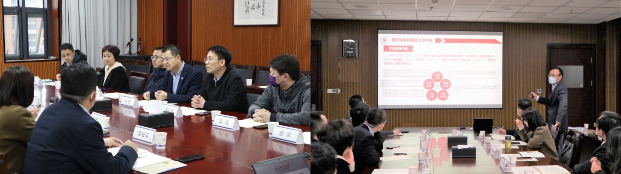 调研团队参访浙江大学,与浙江大学研究生工作系统教师展开座谈交流,会议由浙江大学党委研究生工作部部长张荣祥主持。张荣祥对乐鱼在线平台一行表示欢迎,详细介绍了浙江大学思政教育和管理工作情况。双方人员就主题教育、课题与课程思政、导学关系、学生心理疏导及危机处理、学生就业引导等深入讨论。