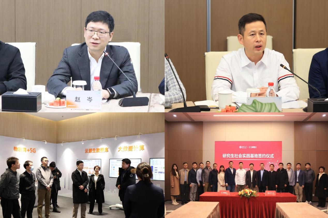 调研团队前往阿里云计算有限公司,调研前沿产业发展现状,签订学生社会实践基地合作协议。阿里云智能人力资源副总裁孙中元对来访团队表示欢迎,并介绍了企业在云计算领域的实践和探索。赵岑对阿里云长期以来的友好帮助与合作表达感谢。赵岑充分肯定了阿里云在大数据和人工智能方向的领先技术和先进经验,期待进一步加强校企合作,为推动实现国家高水平科技自立自强、服务国家创新发展作出贡献。