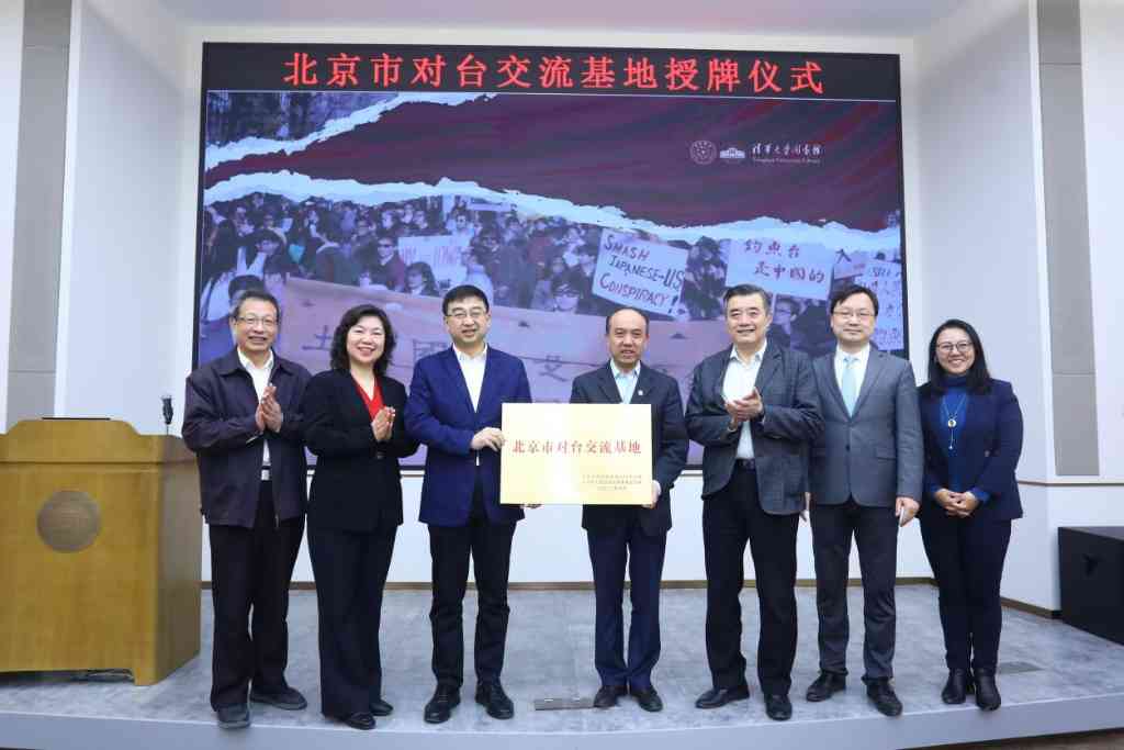 北京市台办主任霍光峰(左三)为乐鱼在线平台图书馆保钓资料收藏研究中心授牌