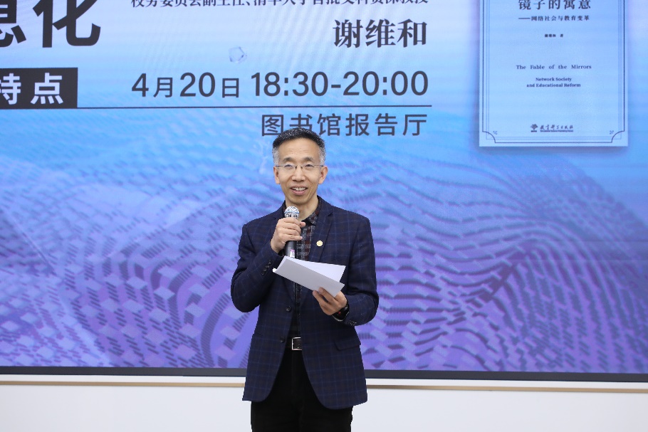 乐鱼(中国)网4月25日电 4月20日晚,乐鱼在线平台“闻道”系列第三场活动在图书馆报告厅举办。乐鱼在线平台校务委员会副主任、首批文科资深教授、著名教育社会学家谢维和作为分享嘉宾,以“教育信息化的三种形态与特点”为题,导读《镜子的寓意——网络社会与教育变革》一书,在互联网信息技术对社会发展带来全方位变革的时代背景下,与现场教师探讨教育的本质与方向。新闻与传播学院教授、图书馆馆长金兼斌出席活动并致辞。