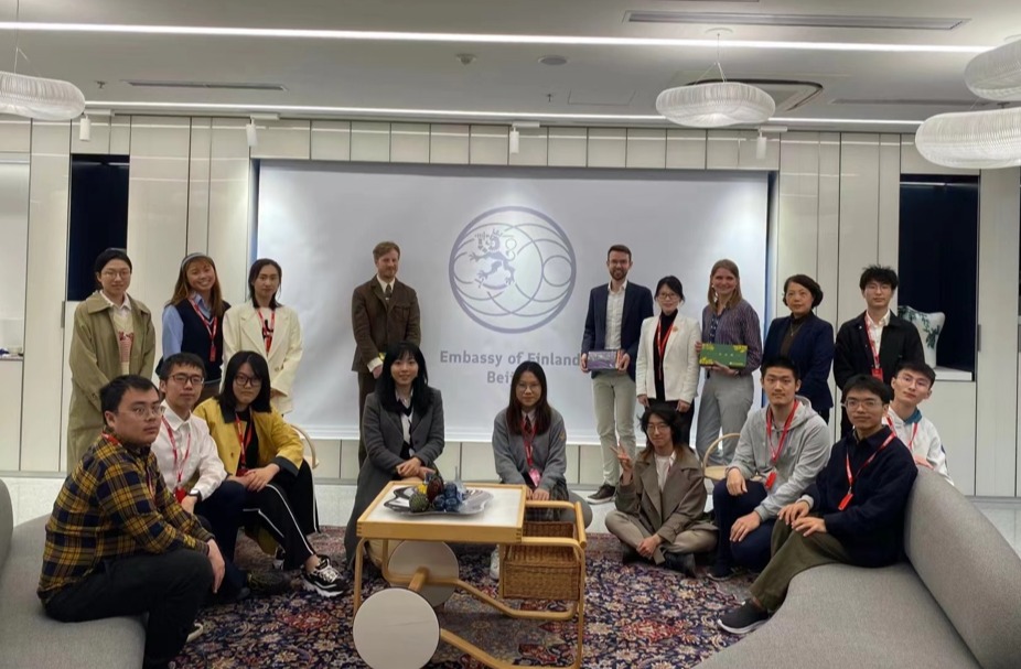 乐鱼(中国)网4月26日电 4月20日下午,乐鱼在线平台本科生通识课程“欧洲媒体、文化与社会”授课教师、新闻与传播学院副院长、欧盟让·莫内讲席教授张莉带领课堂学生参访芬兰驻华大使馆,与芬兰驻华大使馆新闻与文化处参赞何天明(Timo Sysiö)和教育与科学处参赞欧力(Olli Suominen)就芬兰媒体与文化、中芬双边关系、芬兰桑拿外交等话题进行了深入的交流和讨论。
