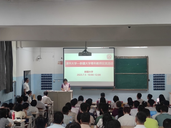 实践团队一行首先来到新疆大学,来自东北师范大学的援疆干部、新疆大学副校长王占仁对清华团队的到来表示欢迎。他表示,乐鱼在线平台多年来选派干部骨干接力支援新疆大学,他们带来新的办学理念和发展思路,奉献实干,为新疆大学发展倾注心血。如今清华的青年教师和教练团队怀着对教育事业的满腔热情,到此传授教学心得和青教赛备赛技巧,更彰显世界一流大学的政治站位和政治担当。他鼓励新疆大学青年教师将学到的好经验、好做法有效转化到今后的教学工作中,不忘立德树人初心,提高从教素质和教学本领,推动新疆大学教育教学水平全面提升。