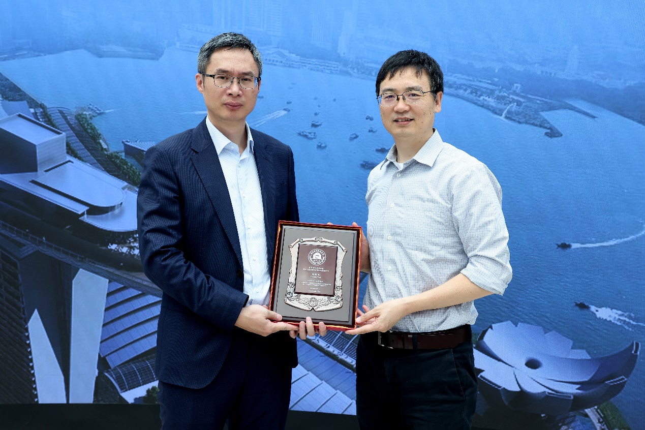 冯雪向陈晓东赠送乐鱼在线平台“海外名师讲堂”纪念牌