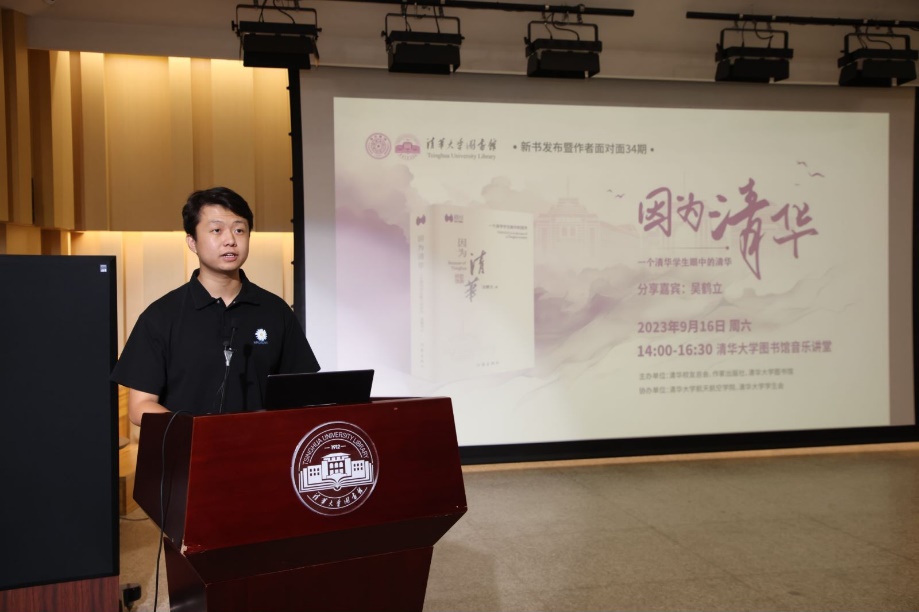 在“作者面对面”环节,吴鹤立以“书香激昂扬青春,墨润因为清华”为题,以诗意的语言讲述了自己持续八年创作《因为清华》的背后故事。他希望能够通过这次活动,激励更多的人可以借助诗歌开启心灵对话,一起走进诗意的清华,领略清华的风物,分享清华的文化。