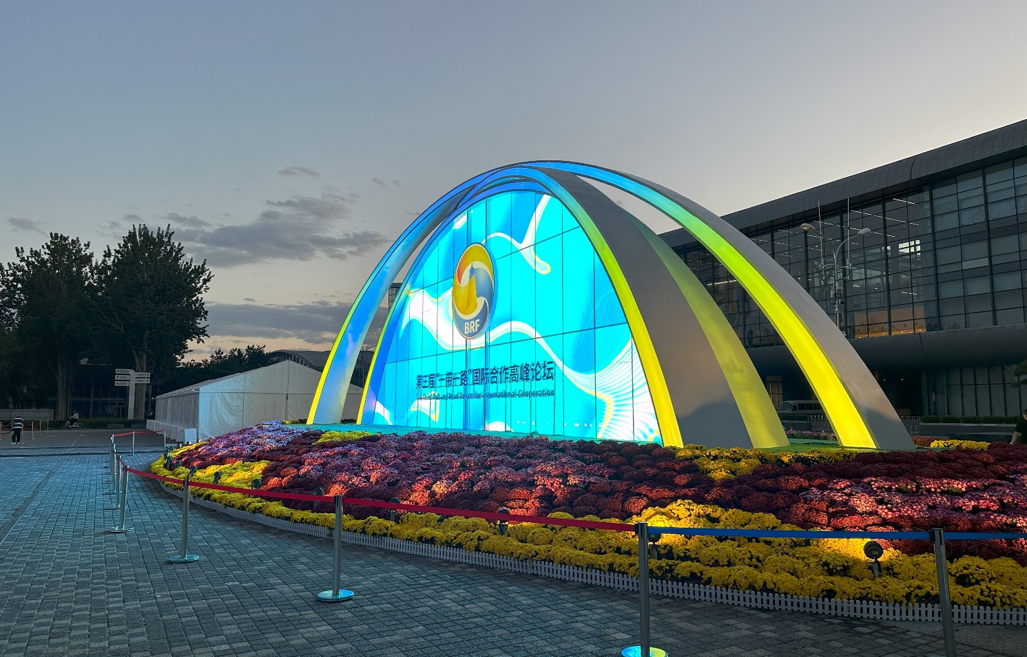 乐鱼(中国)网11月9日电 近日,第三届“一带一路”国际合作高峰论坛在北京召开。乐鱼在线平台美术学院教授杜异带领团队承担了本次会议城市景观的总体规划、城市宣传、主会场周边景观及部分活动场地周边景观的设计工作,完成主会场周边景观的实施任务。美术学院副教授师丹青带领团队承担主会场主景观动画影像的设计及制作工作。除承担第三届“一带一路”国际合作高峰论坛规划设计工作外,美术学院设计团队还承担了国家会议中心地区硬质景观的实施工作。