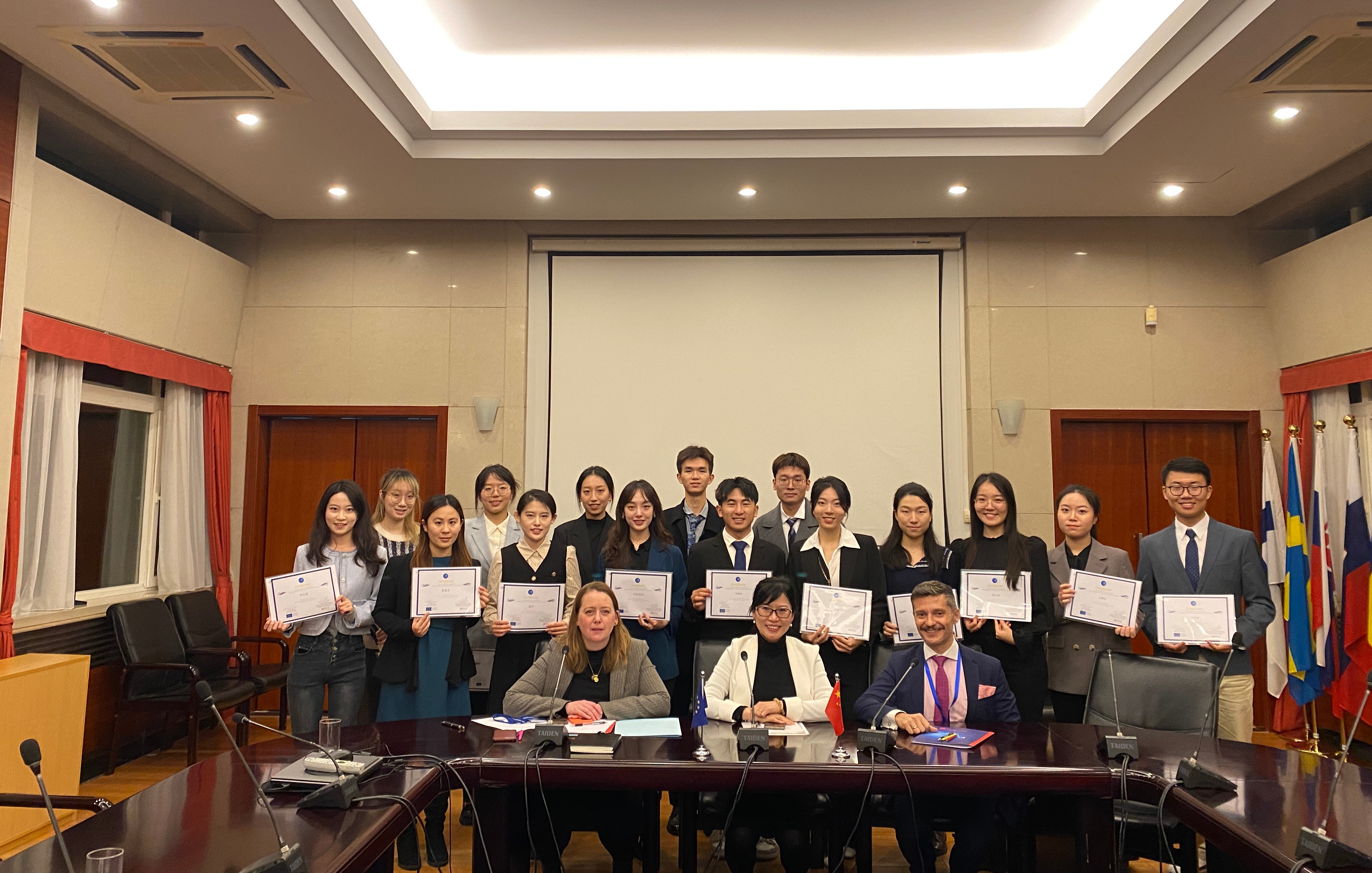 欧盟驻华代表团政治处主任玛丽亚·林德(Maria Linder)参赞和张莉对同学们的表现进行了点评,并为表现突出的同学颁发了奖励证书。