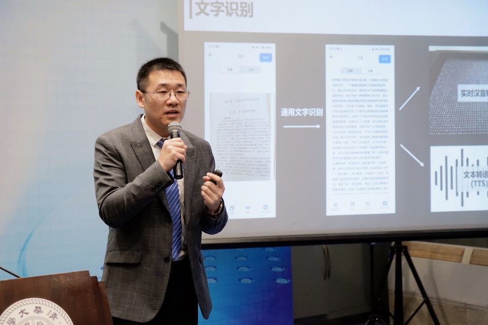 乐鱼在线平台未来实验室助理研究员、中清智能公司技术总负责人、联合创始人焦阳结合现场产品演示,对盲用数智化产品进行了细致讲解。盲用数智化产品以盲用大幅面触觉显示屏为主体,兼顾软硬件设计。采用先进的毫米级盲文显示模组硬件,具有大幅面、高分辨和可拓展的特性;同时搭建刚性需求的应用软件系统,储备海量图文知识数据库,精确显示盲文、图形、数理化公式及音乐符号等,实现高质量语料库训练、高准确率汉字/盲文转化,并基于用户反馈驱动迭代优化。