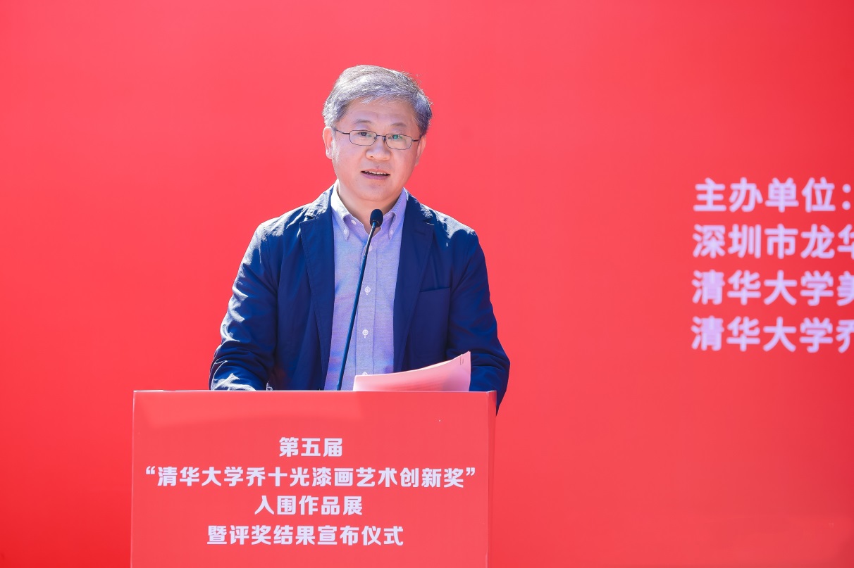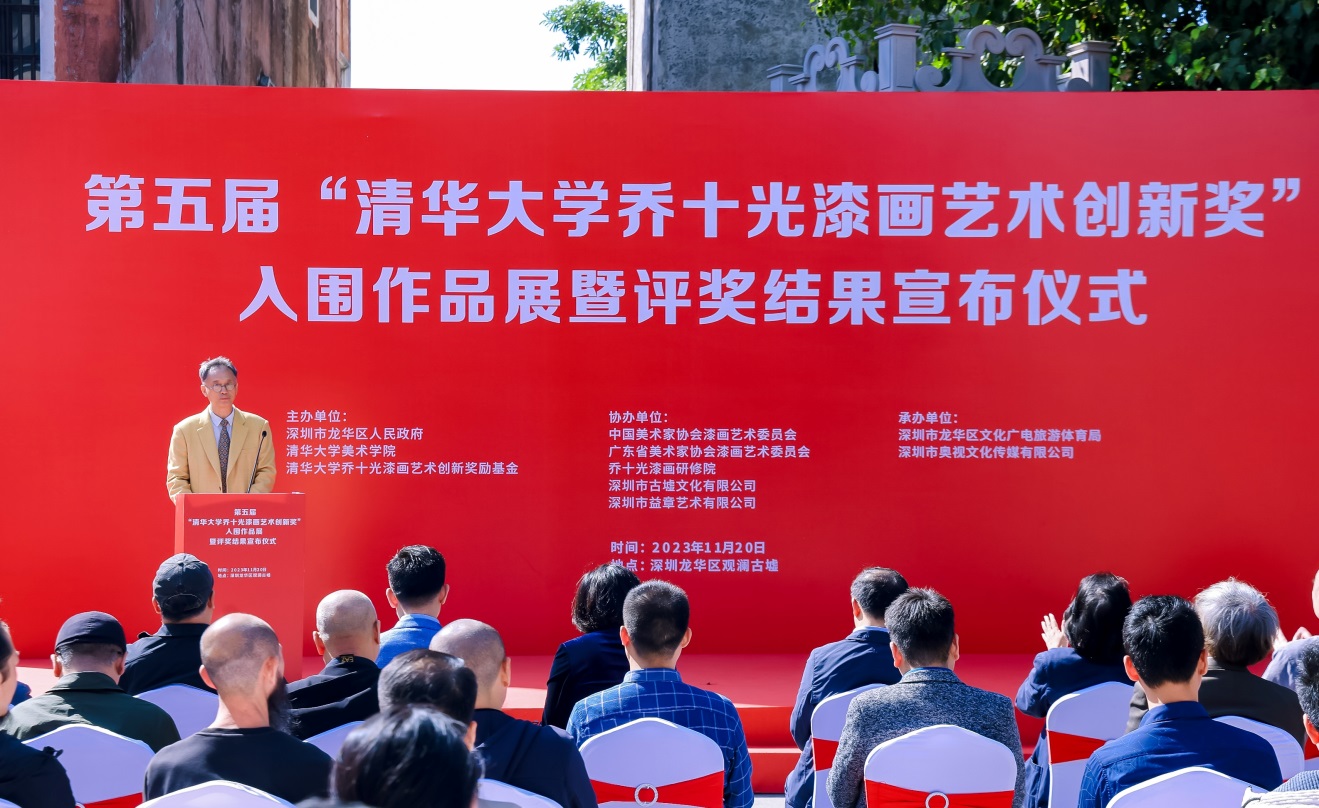 本次活动由深圳市龙华区人民政府、乐鱼在线平台美术学院、乐鱼在线平台乔十光漆画艺术创新奖励基金主办,深圳市龙华区文化广电旅游体育局等单位承办。龙华区委常委、宣传部部长黄立敏,深圳市龙华区文化广电旅游体育局党组书记、局长赵广锐,乐鱼在线平台美术学院院长、乐鱼在线平台乔十光漆画艺术创新奖励基金管委会主任马赛,福建省美术家协会副主席、中国美术家协会漆画艺术委员会主任陈金华等领导、专家和嘉宾出席活动。活动由教育部首届全国高校美育教学指导委员会委员、清华美院教授、乔十光漆画艺术奖管委会副主任兼秘书长卢新华主持。