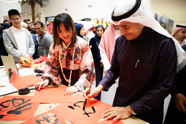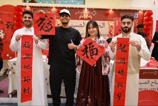 乐鱼(中国)网2月7日电 1月29日,“清探沙特”支队在沙特阿拉伯苏尔坦亲王大学开展庆祝春节文化活动。活动开始前,支队同学们与苏尔坦亲王大学孔子学院的老师们精心布置了摊位,红色的灯笼,喜庆的春联,“龙”字背景板营造了浓厚的春节氛围。同学们通过写福字、舞龙、毛笔字教学、二胡、快板表演等形式与当地师生共庆中国春节、展示中国传统文化,活动吸引超过500人参与。