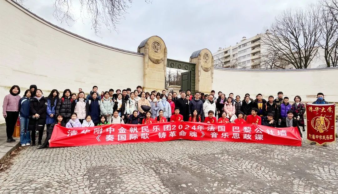 清华附中始终坚持把立德树人作为根本任务,不断探索“三全育人”的新举措,努力构建学校大思政工作格局。将音乐素养培养与思想政治教育紧密结合,是清华附中金帆民乐团一贯坚持的育人导向。学校精心策划和组织本次赴法系列活动,开创性地将音乐思政课从国内扩展到海外,将乐团表演与现场思政课紧密结合,进一步加深了同学们对曲目所蕴含意义的理解。