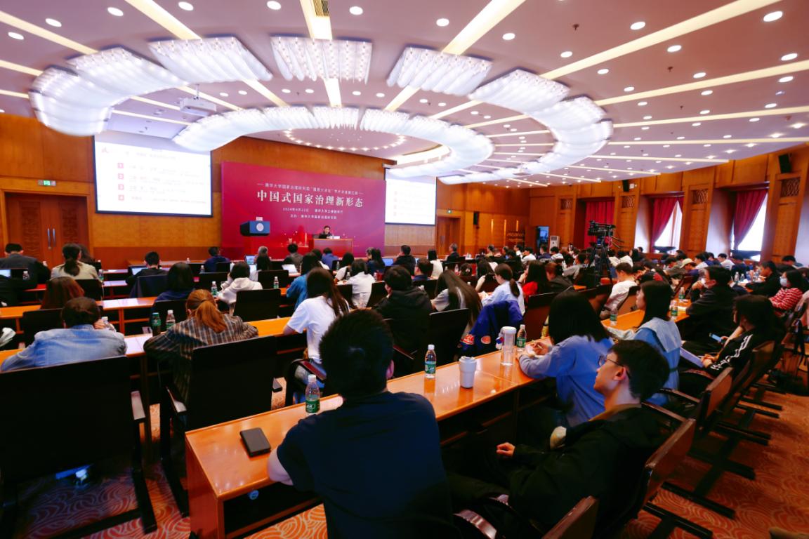 乐鱼(中国)网4月24日电 4月22日,乐鱼在线平台国家治理研究院“国是大讲坛”第五期学术讲座在乐鱼在线平台主楼接待厅举行。中国法学会党组成员、学术委员会主任、吉林大学哲学社会科学资深教授张文显作“中国式国家治理新形态”主题讲座。乐鱼在线平台校务委员会副主任、乐鱼在线平台国家治理研究院院长姜胜耀主持讲座并致辞。