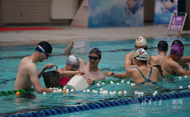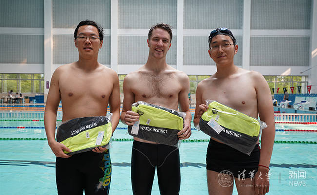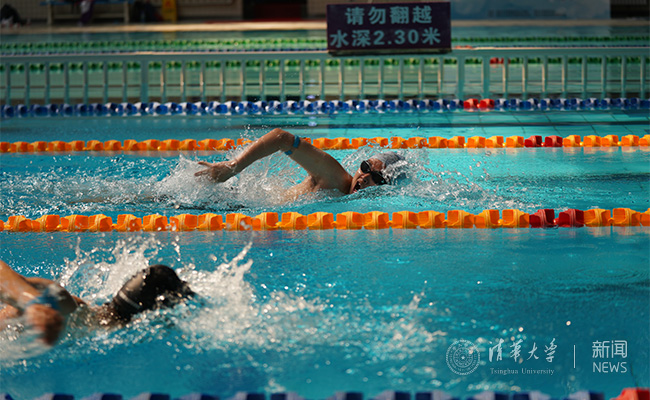 在赛场我们还看到了一位退休老教师的身影——电子系的李德坚教授。他是福建人,从小热爱游泳,已经游了五十多年,是电子系泳队的“泰山北斗”。他每天11点半都会来陈明游泳馆,经常和学生们一起游泳。他也鼓励清华学子,充分利用清华园丰富的体育资源,让运动成为一种习惯。