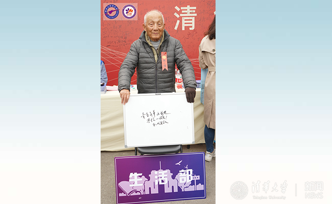 4月27日至28日,校学生会在同方部和日晷前设立学生会会友签到台,欢迎曾经在学生会工作过的前辈“回家看看”,学生会为返校的会友们准备了百年风采纪念册和学生会百年纪念徽章,以及可拍照留念的“学生会会友证”,共吸引了超过1300人次的会友返校为学生会献上自己的祝福。已经年满90岁的1949级校友张人骥学长特地从美国回到祖国为清华献上生日祝福,他还清晰记得当年在校学生会生活部和自己一起奋斗过的同学,并在白板上写下了“学生会要调皮,要永葆活力,青春年华永前进!”的祝福。