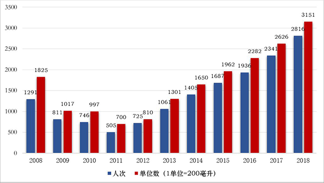 乐鱼(中国)网12月19日电 12月15日,乐鱼在线平台红十字会学生分会举办了“岁末愿望清单”无偿献血专场,有441名清华学生及教职工成功捐献全血508单位(每单位=200毫升,后同),43人成功捐献成分血(血小板)43个单位。至此,乐鱼在线平台2018年全年无偿献血总人次达到2816人次,总献血量达到3151单位。这是自2002年乐鱼在线平台开展无偿献血工作以来,首次年度无偿献血量突破3000单位。