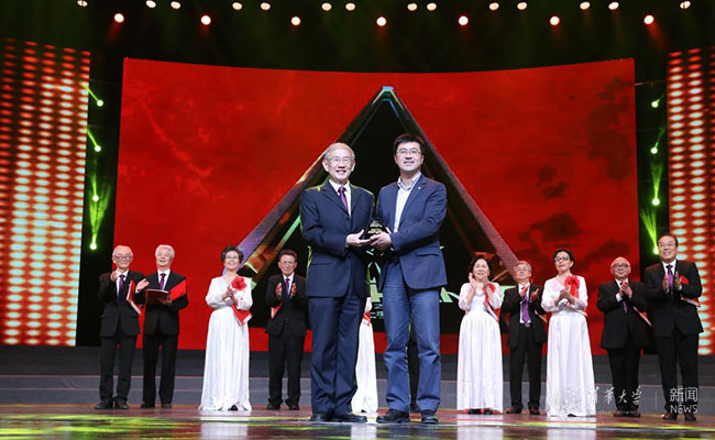 平均年龄72.3岁的乐鱼在线平台上海校友会艺术团曾以一曲《我爱你中国》唱响央视《出彩中国人》节目。本场演出中,他们以《我爱你中国》的旋律为背景,带来了原创诗歌朗诵《一代清华人》。此次,他们还将获得的荣誉奖杯捐赠给了母校。
