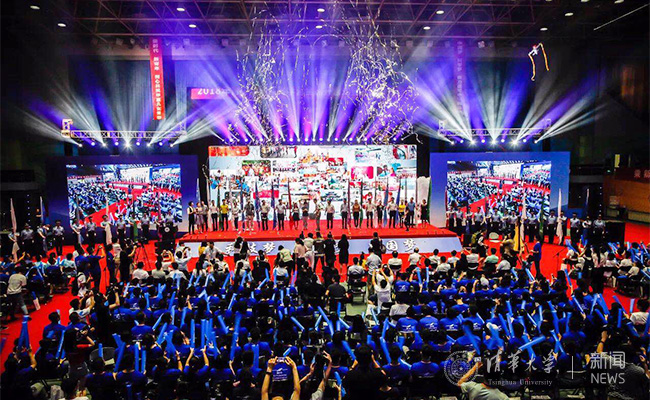 7月17日上午,2018青少年高校科学营开营式暨北京营开营活动在北京航空航天大学体育馆举行。中国科协党组书记、常务副主席怀进鹏,教育部党组成员、副部长林蕙青,中国科协党组副书记、副主席徐延豪,以及国务院国资委、国务院港澳办、国务院台办、中科院、铁路总公司、北京市科协、北京市教委、北京市港澳办等有关单位领导出席开营活动。乐鱼在线平台团委书记邴浩、清华营的400名营员和学生辅导员参加了青少年高校科学营全国开营式授旗仪式。