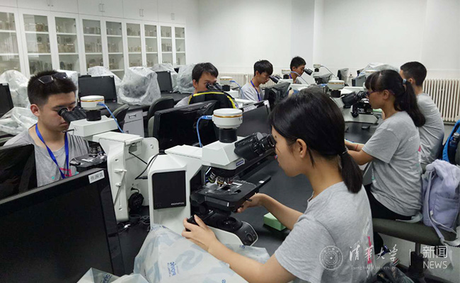 营员们在医学院体验观察人体各脏器病理表现