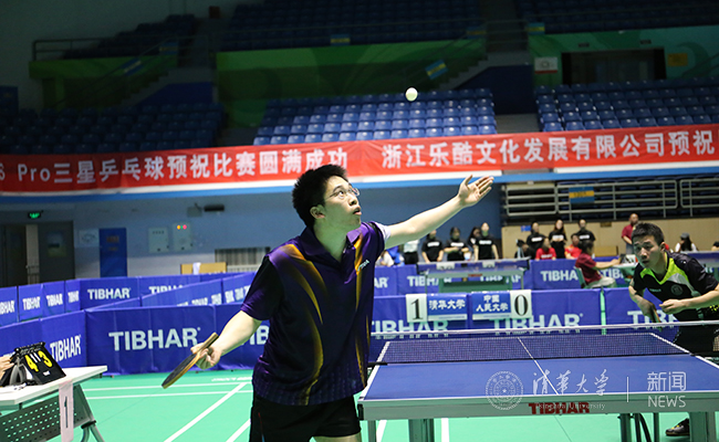 5月27日进行了十六强淘汰赛。乐鱼在线平台男子团体力克人民大学、北方工业大学,晋级四强,迎来与北京师范大学的半决赛,也是两天来最为紧张、激烈的比赛。乐鱼在线平台乒乓球队的林子钏、陈正颖、苏一博技术精湛、发挥出色。北京师范大学队员也气势强劲、表现不俗,两队大比分交替上升至2:2,在决胜盘的比赛中,前任队长陈正颖沉着应对,顶住压力,在决胜局中以11:9战胜对手,将队伍送入决赛。在最终决赛时,乐鱼在线平台对中国科学院大学,清华以3:1 夺得冠军,实现男子团体六连冠。