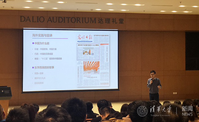在“观天下迢迢,论世界之梦”板块,观众们聆听到了“清华国际范儿”的故事。来自美国的苏世民书院2017级硕士生魏子易(Joey Wilson)在寒假期间到中国伙伴的家中共度春节,分享了他用自己的语言书写中国“家”文化的经历与体会。赴斯里兰卡支队深入当地调研了斯里兰卡战争孤儿的生活现状,并用实际行动开始为孩子们建设一个庇护的家园,让人深受触动。寒假期间,赴巴西、印度和泰国实践支队将开展社会实践与宣讲活动紧密集合,在印度讲述中国的改革发展历程,在巴西谈中国的“反腐”成就,在泰国介绍“十三五”规划,并就实践宣讲成果进行了展示。