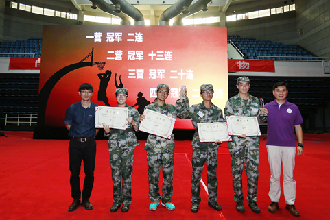 随后,胡凯和体育部书记马新东颁发了新生进入清华园以来体育竞赛第一个奖项:新生军训篮球赛优胜奖。同时还对80名获得定向越野优胜奖的同学进行了表彰。