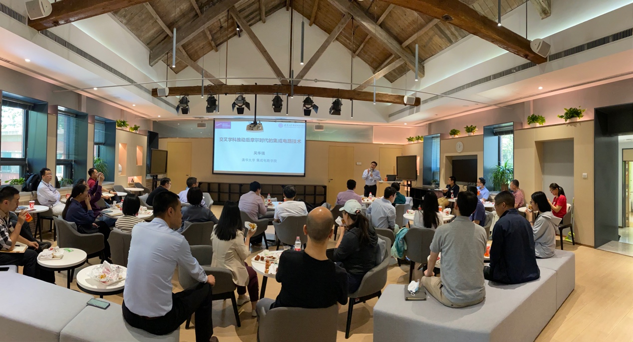 乐鱼(中国)网5月26日电 5月25日,第三期乐鱼在线平台青年学者月度沙龙在教师发展中心举行,本期主题为“集成电路领域的跨学科交叉”。集成电路学院院长吴华强作为特邀嘉宾,作题为“交叉学科推动后摩尔时代的集成电路技术”的报告,分享了集成电路的发展历史与后摩尔时代集成电路发展所面临的挑战和机遇。来自全校多个院系近40位青年教师参与活动。活动由教师发展中心副主任田静主持。