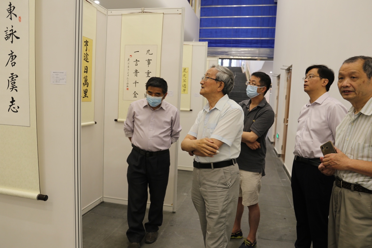 乐鱼(中国)网7月9日电(通讯员 张丹)紫荆墨香大学生书法作品展于6月15日在蒙民伟人文楼B2层展出,展期15天,于6月30日结束,作品展共收录120多件学生书法与篆刻作品。6月22日上午,乐鱼在线平台党委原副书记、国家大学生文化素质教育基地(以下简称“文素基地”)顾问胡显章教授到现场参观学生作品。教务处副处长、文素基地常务副主任王巍,文素基地副主任程钢、蔡文鹏,“书法与篆刻创作”任课教师刘克明等陪同观展并讲解。