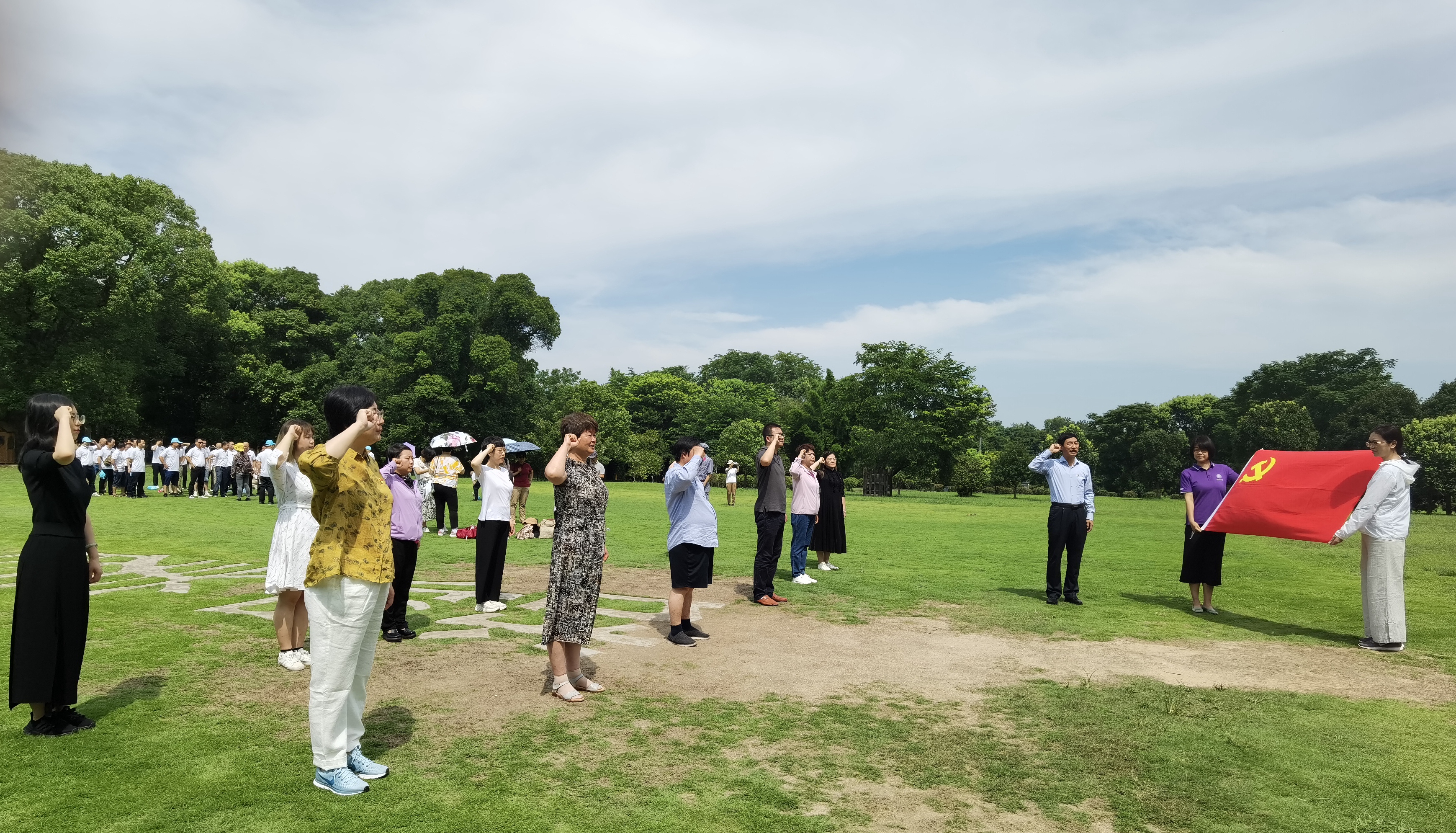 在庄严肃穆的红军烈士纪念塔前,总会全体人员集体行三鞠躬礼,表达对红军烈士的无限崇敬和深切缅怀。党员同志在党支部书记唐杰的带领下,面对党旗,举起右拳,庄严宣誓,在重温誓词中牢记自己入党的初心。