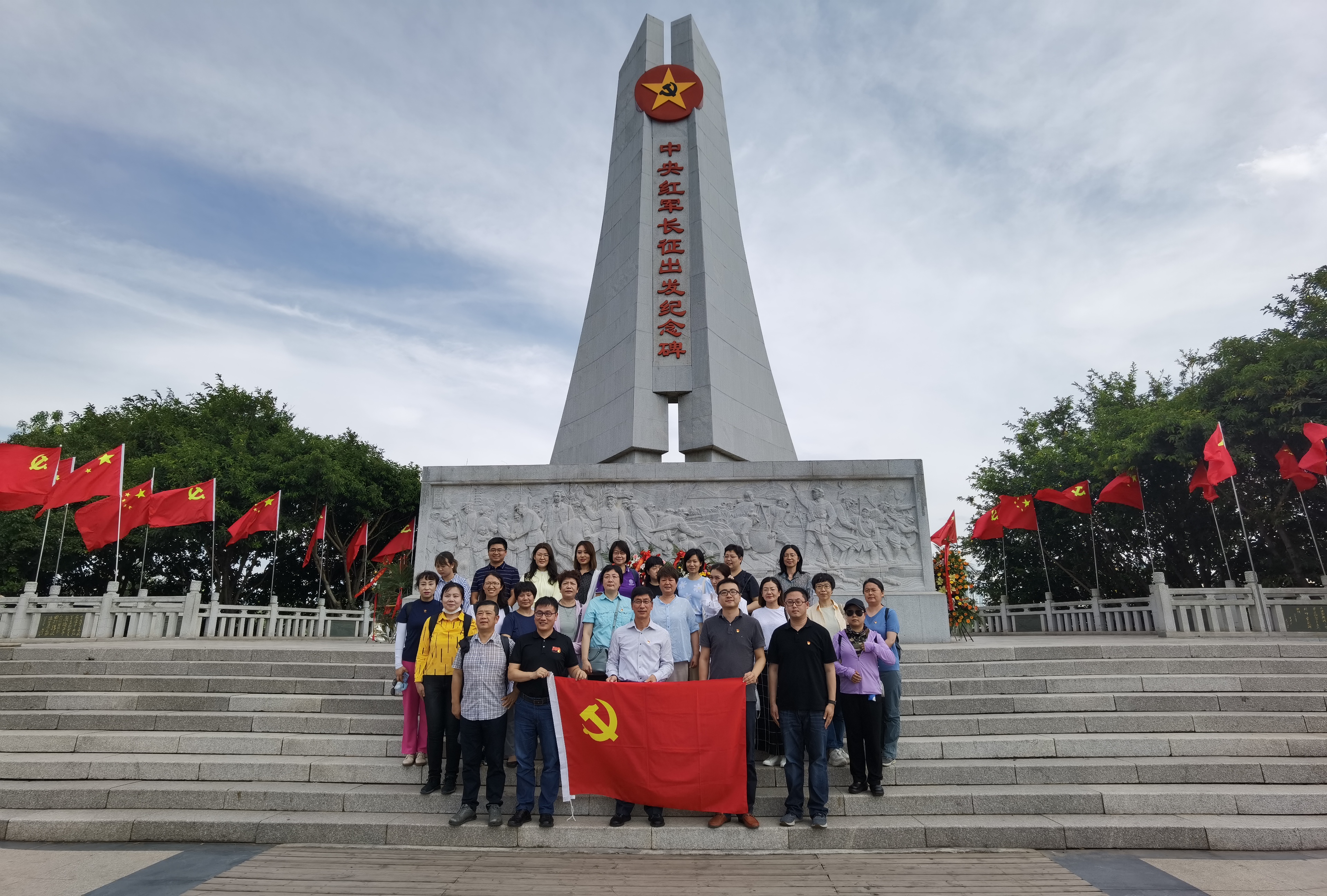 于都县是中央红军长征集结出发地、长征精神的发源地。在于都县中央红军长征集结出发地纪念园,校友总会一行首先瞻仰了中央红军长征出发纪念碑。支部党员满怀着对革命先烈的崇高敬意,在纪念碑前举行了重温入党誓词宣誓活动。