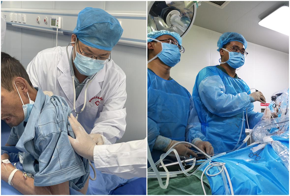 正在新疆、西藏支援的蔡存良、靳松医师的工作场景