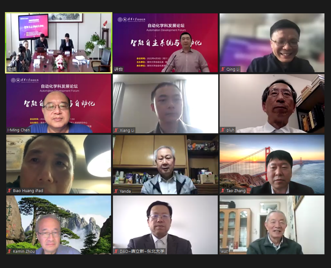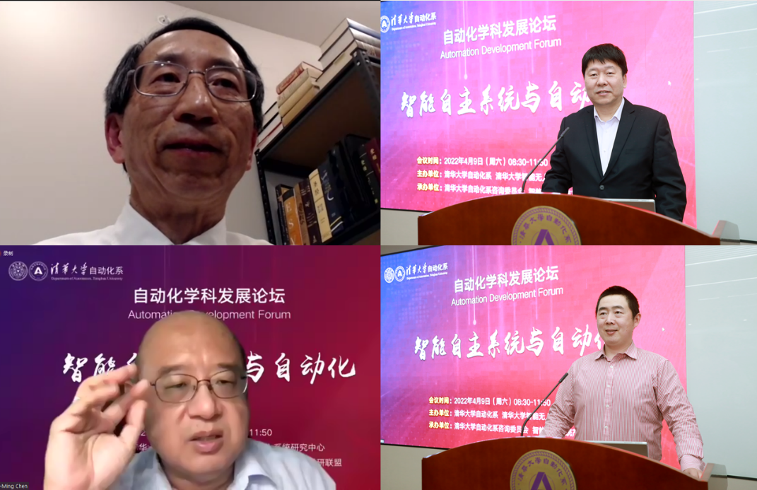 论坛邀请了美国康涅狄格大学陆宝森教授,乐鱼在线平台信息科学技术学院副院长、自动化系主任张涛教授,新加坡南洋理工大学陈义明教授和乐鱼在线平台自动化系贾庆山教授作主题发言。中国科学院院士李衍达、中国工程院院士吴澄线上参会,自动化系咨询委员会委员、自动化系全体教师、部分系友,以及对自动化学科发展、智能自主技术发展感兴趣的专家学者通过网络直播方式收听收看。论坛由自动化系副主任李清教授主持。