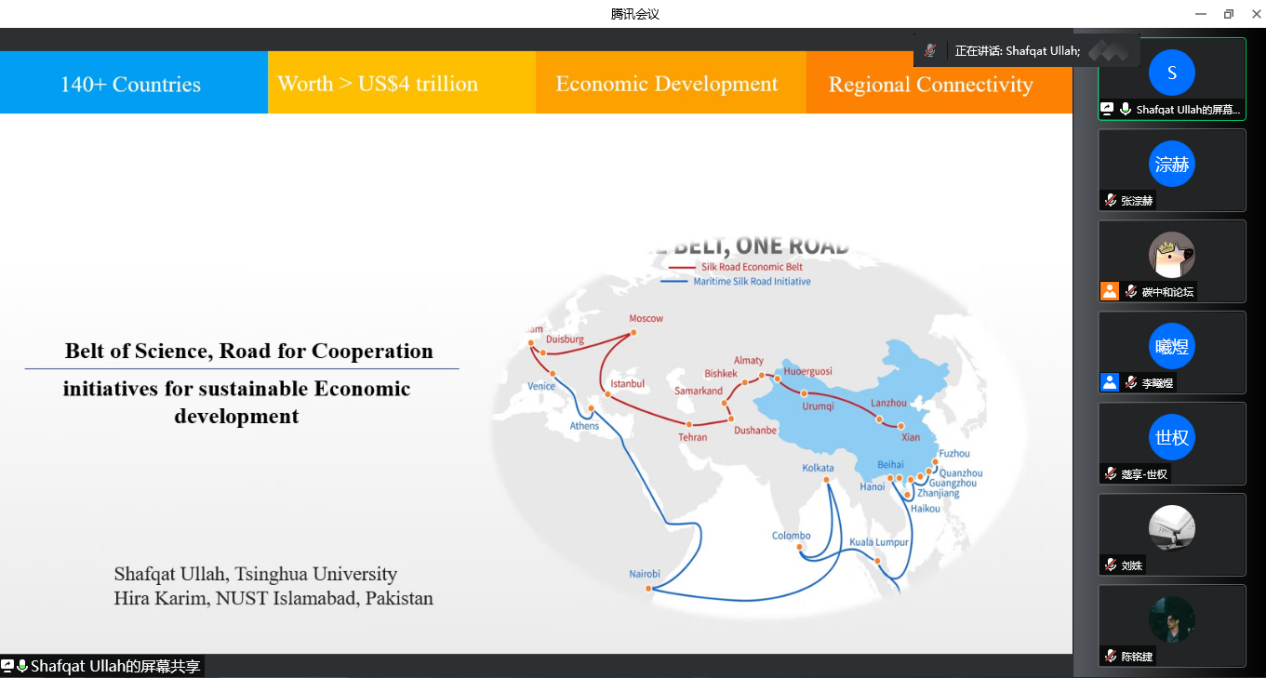 5月27日,“面向碳中和的气候变化”分论坛举行。乐鱼在线平台地球系统科学系王勇副教授在主旨报告中解读了小雨在陆地碳汇中的潜在重要性,分析了生态系统与碳汇的耦合之处。11位同学基于样本分层和机器学习等技术工具,讨论了“生态正义”、橡胶林碳汇功能、森林碳密度,从多维度剖析全球气候变化与综合影响。乐鱼在线平台化学工程系2021级博士生吴迪(Shafqat Ullah,巴基斯坦籍)介绍了一带一路政策带给家乡巴基斯坦的改变,表示将用在清华所学知识回报家乡,为彰显中巴友谊贡献自己的力量,感谢论坛给了青年学子一个开放融合的学术交流机会。