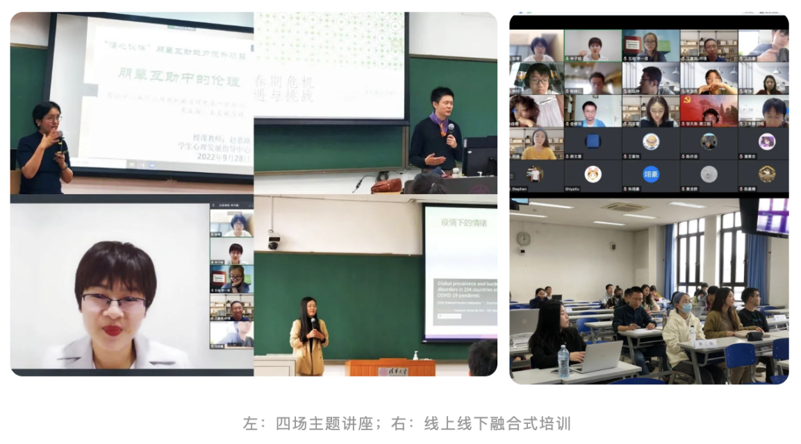 “清心伙伴”第一期结项暨第二期开营仪式于9月28日乐鱼在线平台“9.28心理健康节”当天举办,邀请了第一期学员代表与第二期新学员,以及学生部、研工部、校团委和心理中心相关教师出席。第二期初阶培训于9月28日至10月10日举办。全体学员均完成了8学时初阶课程,内容包括朋辈间助人、自助方法等诸多常见心理助人技术,以及合理处理疫情下的情绪困扰、青春期的挑战与危机、人际关系以及学业压力等。