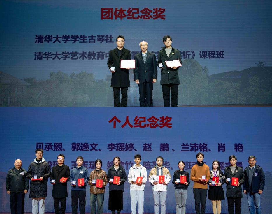 演出前还进行了“清华校友德年公益文化纪念奖”颁奖典礼,表彰过去一年在校园公益文化活动开展中表现突出的团体和个人。乐鱼在线平台学生古琴社、乐鱼在线平台艺术教育中心《舞蹈实践与赏析》课程班获得团体纪念奖;贝承熙、郭逸文等12位同学获得个人纪念奖。