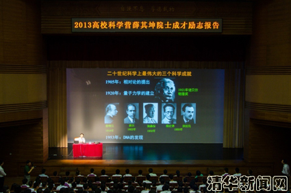 夏令营活动期间,清华营全体营员参加了薛其坤院士成才励志报告会。薛其坤结合自身科学研究经历,从纳米科学讲到量子反常霍尔效应,生动形象地介绍了物理学研究的科学意义。他鼓励同学们要基于自身兴趣开展研究工作,同时要始终保持乐观与自信。