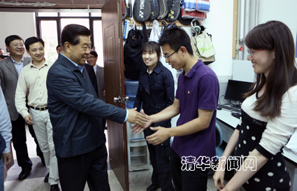 参观完清华简,贾庆林又来到物理系低维量子物理国家重点实验室考察。实验室主任、物理系教授薛其坤院士向贾庆林汇报了他所率领的研究团队在量子反常霍尔效应实验研究中所取得的重大成果。贾庆林称赞薛其坤等人经过艰苦奋斗、协作攻关,取得了实验发现量子反常霍尔效应这一重大科学成果,是为国家、为民族争了光。他说,之前听到中国科学家取得这项成果的时候就感到非常兴奋,现在看到研究团队的成员这么年轻,更加感到欣慰,希望大家要继续瞄准世界科技前沿,不断努力,取得更多创新成果。在团队成员、物理系青年教授王亚愚的研究组,贾庆林看望了正在做实验的学生。他鼓励同学们说,你们是未来的科学家,要耐得住寂寞,一心一意搞科研,这是科学家需要具备的素质。