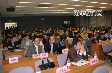 姜胜耀代表学校对与会校友在校庆日返校表示欢迎,他向校友们介绍了清华经管学院和生命学院在学科评估中取得的骄人成绩。