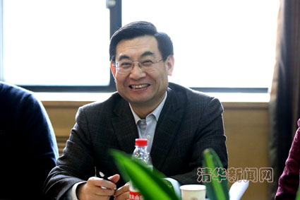 图为校党委书记胡和平与材料学院教师交谈。记者 智 斐 摄