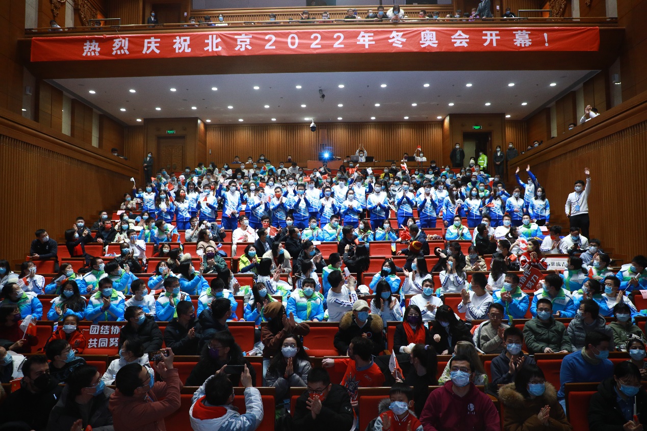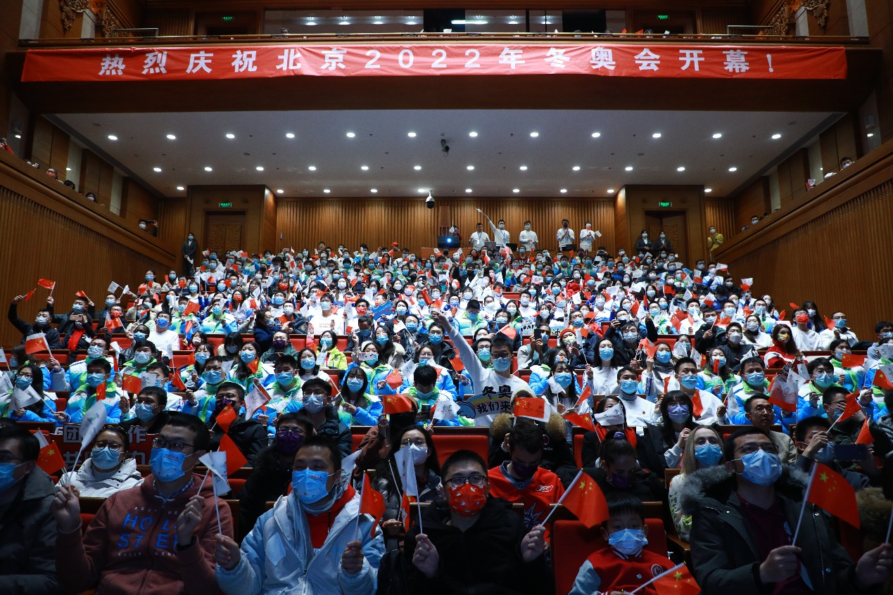 乐鱼(中国)网2月6日电 迎接冰雪之约,奔向美好未来。2月4日晚,北京第二十四届冬季奥林匹克运动会开幕式在国家体育场隆重举行。国家主席习近平出席开幕式并宣布本届冬奥会开幕。当晚,北京市委教育工委副书记李军锋、安全稳定工作处处长庞谦,校领导王希勤、李一兵、过勇,校冬奥志愿者专项工作领导小组成员,与部分冬奥志愿者、在校学生480余人齐聚蒙民伟音乐厅、南区学生活动中心,集中观看北京2022年冬奥会开幕式直播,共襄盛举,同向未来。
