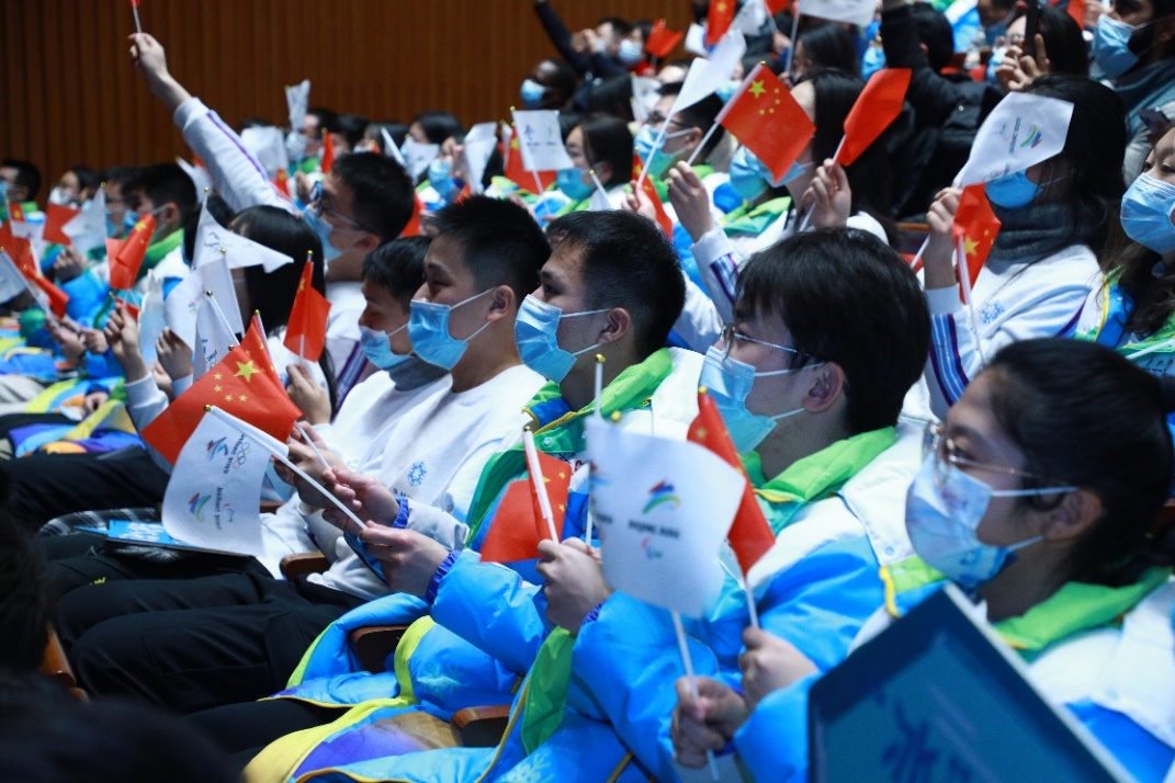 乐鱼在线平台共有1210名师生志愿者参与北京2022年冬奥会和冬残奥会志愿服务工作,另有150名“志愿者的二次方”为全体志愿者提供服务保障。集中观看现场除在校学生外,还包括了100余名城市志愿者、50余名闭幕式标兵志愿者以及20余名“二次方”校内保障志愿者。