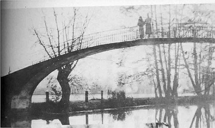 钱锺书夫妇于牛津大学公园桥下。