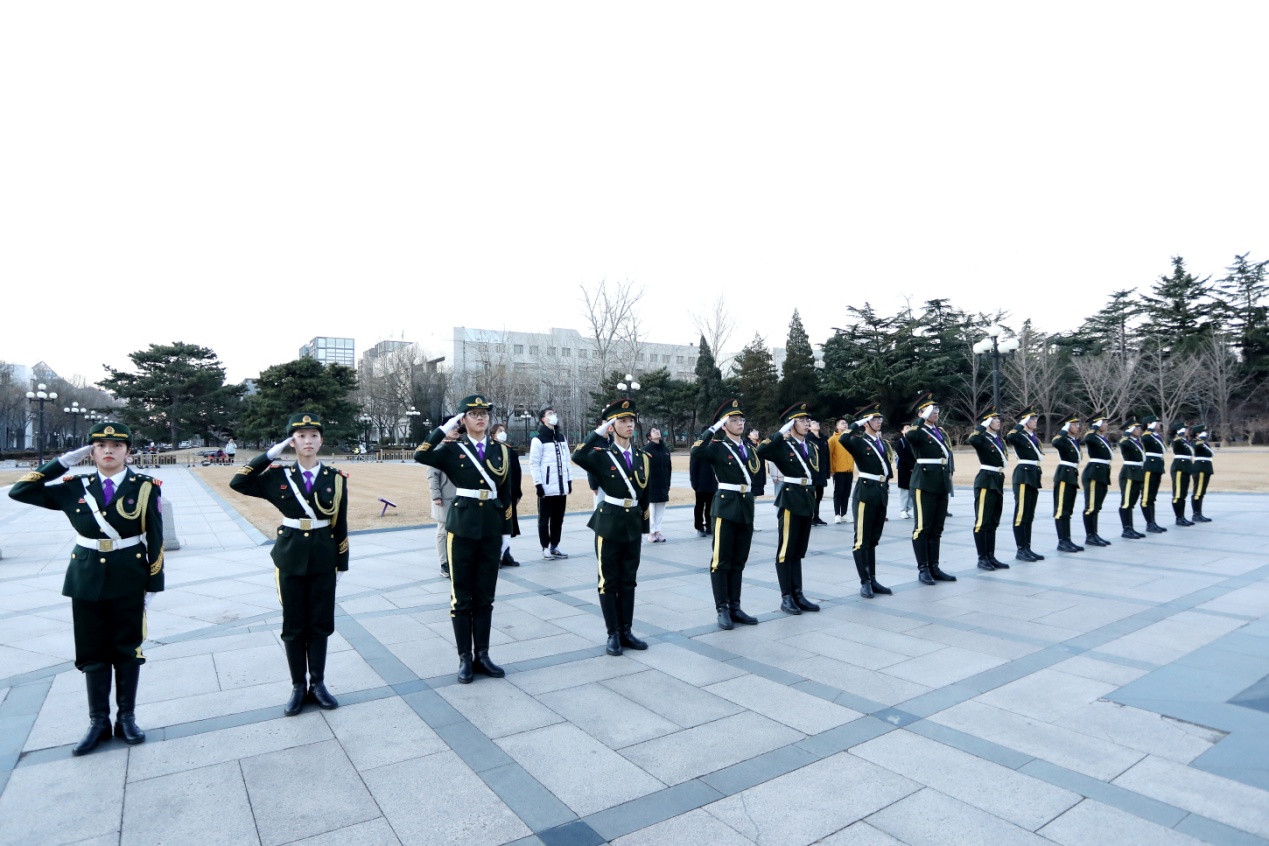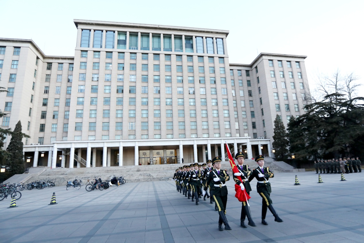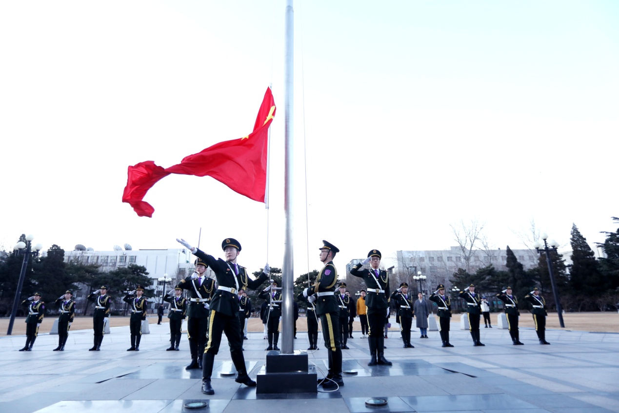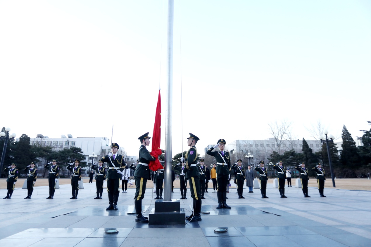 2023年2月20日早七点,乐鱼在线平台主楼前广场正步踏响,国旗飘扬,伴着松绿与鲜红,迎接新学期第一天的晨光!