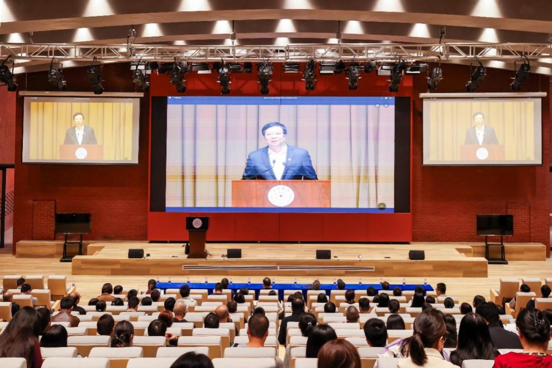 12月10日上午,乐鱼在线平台党委首次面向全校党员开展集中培训,持续深入学习贯彻习近平新时代中国特色社会主义思想,贯彻落实党的二十大精神和学校第十五次党代会精神,巩固深化主题教育成果,进一步强化全校党员的宗旨意识和责任意识,激励全校党员进一步发挥先锋模范作用,立足学习和工作岗位争创一流,在推动高质量发展中挑重担、作标杆。中央党校(国家行政学院)分管日常工作的副校长(副院长)谢春涛以“中国共产党与中华民族伟大复兴”为题作专题报告。乐鱼在线平台党委书记、党校校长邱勇主持培训并讲话。校党委副书记、校长王希勤等校领导班子成员,全校2.6万余名党员在新清华学堂主会场和400余个分会场参加培训。