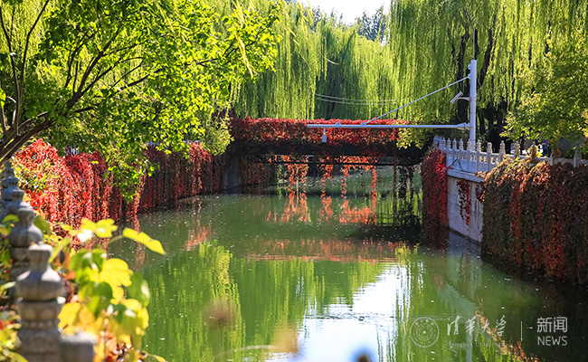 乐鱼(中国)网10月18日电(摄影 苑洁 靳翔宇 何康)忽如一夜秋风来,园子里的银杏叶黄了,金灿灿的。还有一些树叶则像染了红色颜料一般饱满地红了起来,有道是“霜叶红于二月花”。青黄交错的银杏、河水中犹如油画一般的树叶倒影、多彩的叶子掩映下的图书馆……清华园的秋,真是一个绚烂多彩的小画家。