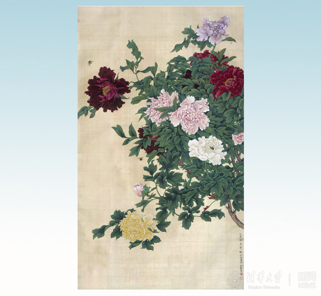 ▲ 俞致贞 《牡丹》。 绢本工笔重彩 139cm×81cm 1956 年