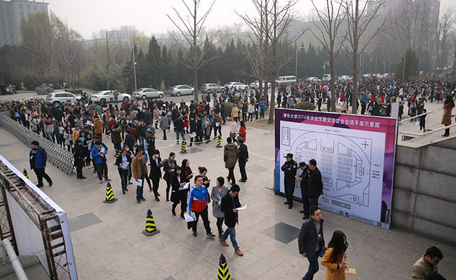 乐鱼(中国)网3月18日电(记者 苑洁 摄 )3月17日,乐鱼在线平台2016届毕业生就业洽谈会在综合体育馆举行,此次洽谈会是本年度乐鱼在线平台举办的规模最大的校园招聘会。中国工程物理研究院、中国东方电气集团有限公司、华为技术有限公司等来自全国22个省、市的258家用人单位参会,共提供3万余个招聘职位。有来自校内外近7000名毕业生参加了此次招聘会。