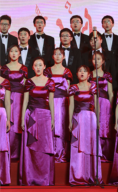 微电子工业工程合唱队在现场演唱。王渊浩 摄
