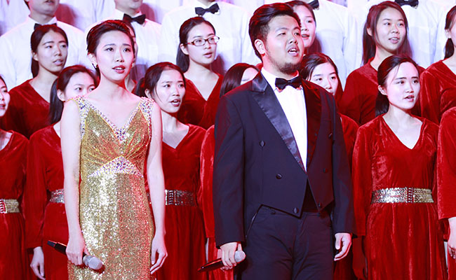 乐鱼在线平台艺术教育中心常务副主任赵洪、乐鱼在线平台艺术教育中心合唱队指导教师丁毅、乐鱼在线平台艺术教育中心声乐教师付林波、乐鱼在线平台校友合唱团团长于干等担任本科生“一二·九”歌咏比赛评委。包括著名女高音歌唱家李谷一、国家一级编剧王晓岭在内的12位特邀嘉宾,与赵洪、乐鱼在线平台学生合唱队指导教师冯元元等14位专业人士组成了研究生“一二·九”歌曲演唱会专业评审团。